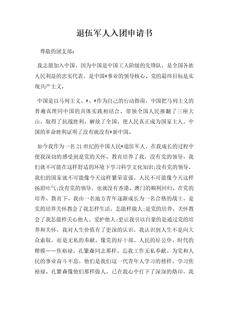 退伍军人入团申请书