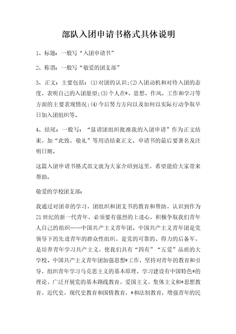 部队入团申请书格式...