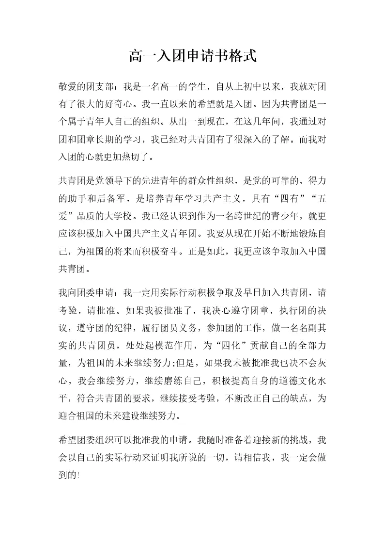 高一入团申请书格式