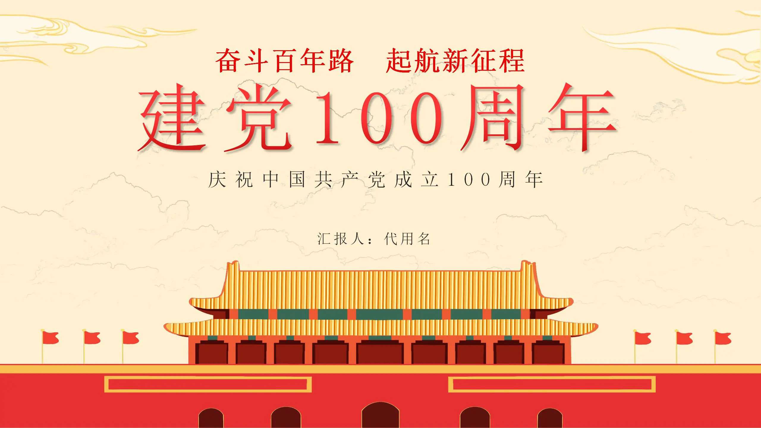黄色简约风建党一百...