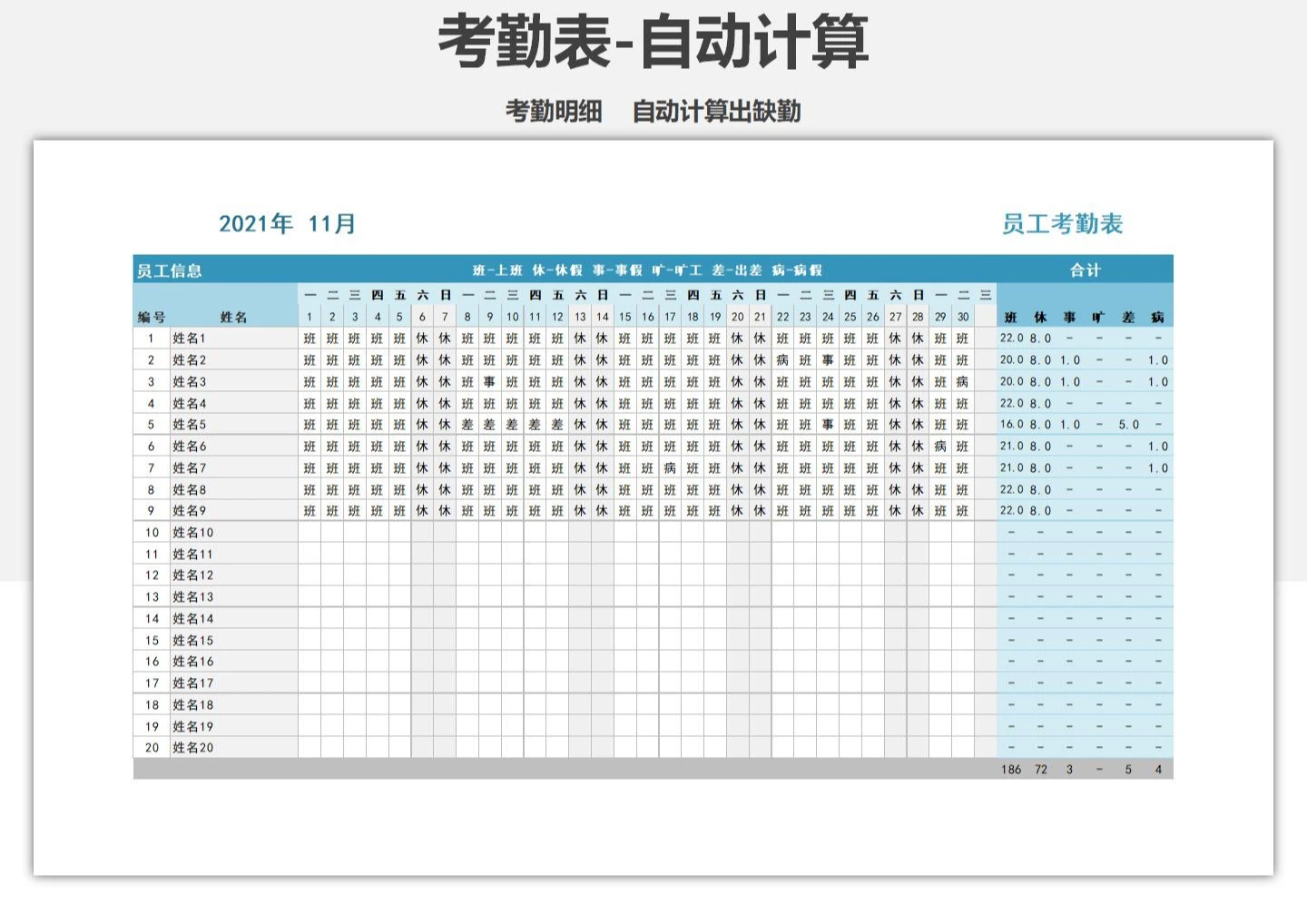 考勤表-自动计算