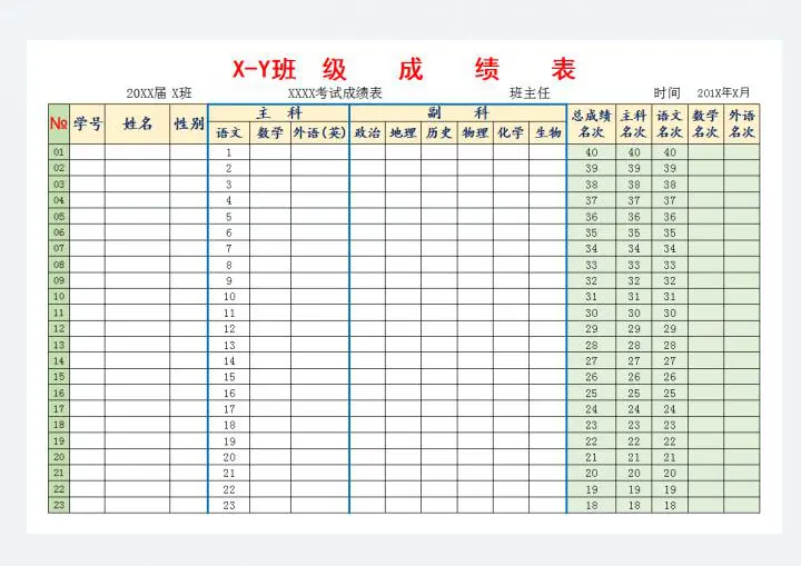 班级学生成绩单