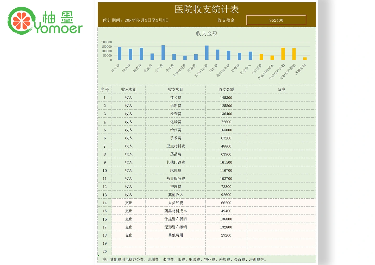 医院收支统计表Excel模板
