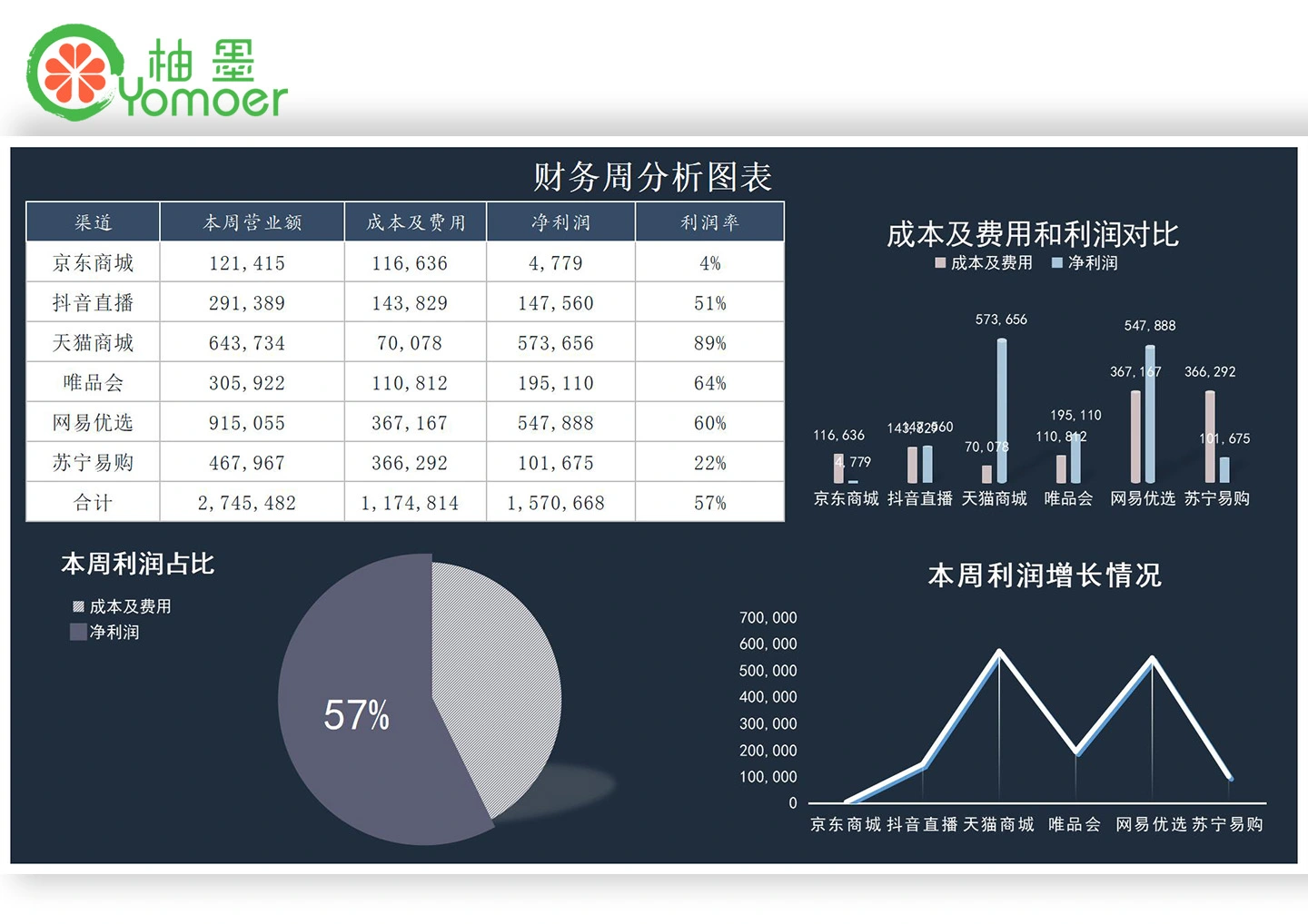 深蓝线上销售财务周分析图表Excel模板