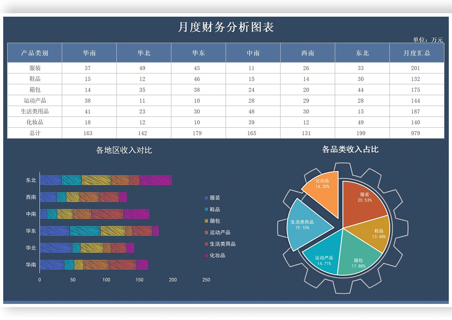 深蓝产品各地区月度财务分析Excel模板