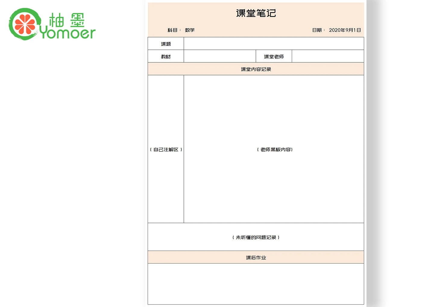 小学生课堂笔记
