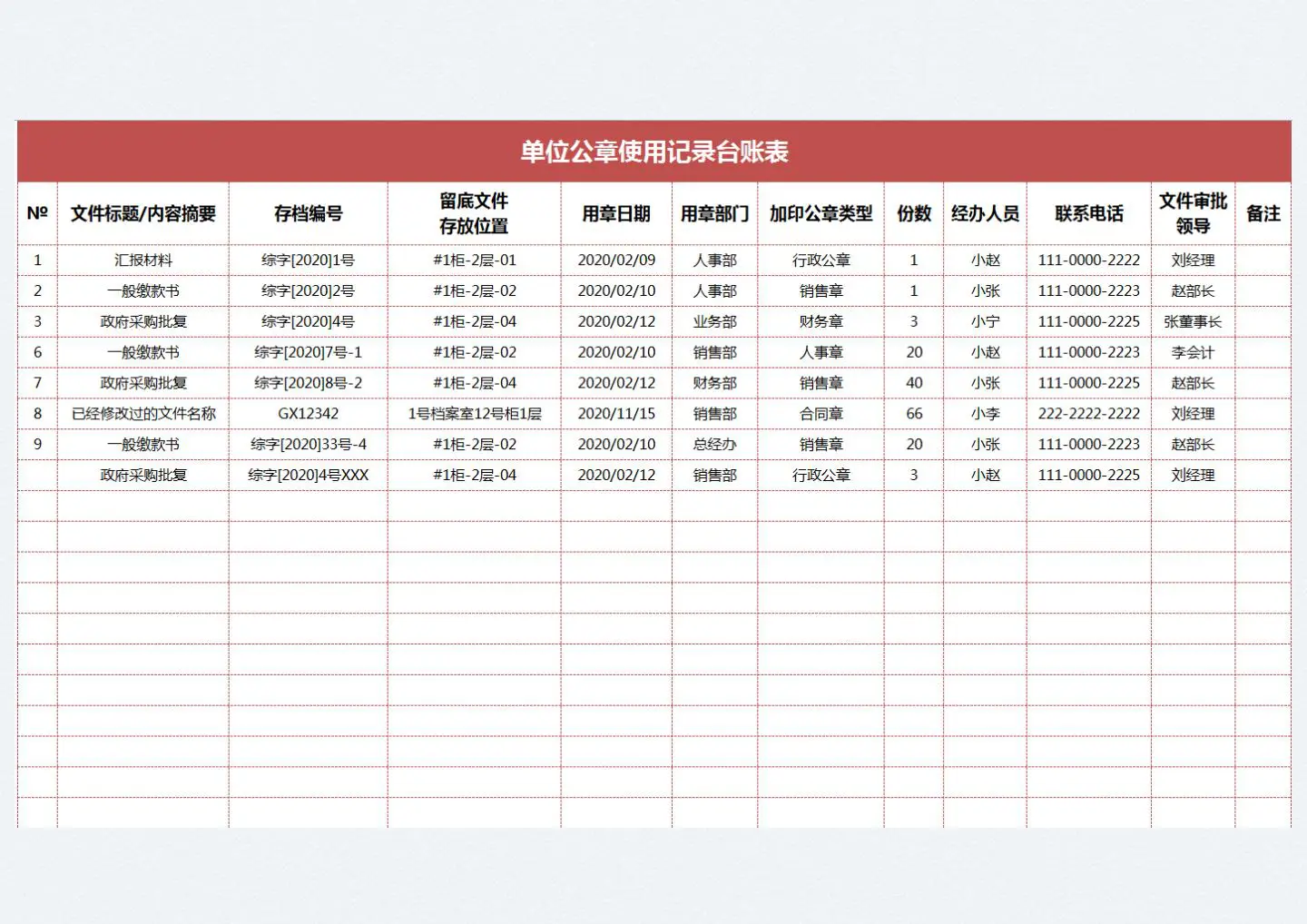 单位公章使用记录台账管理表