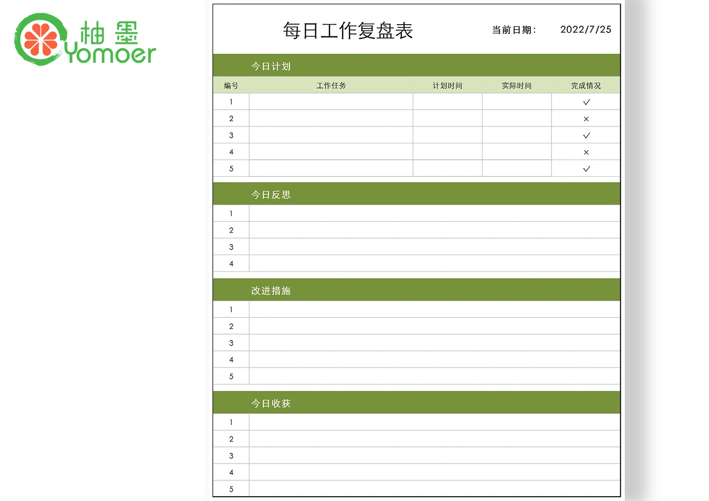 每日工作复盘表