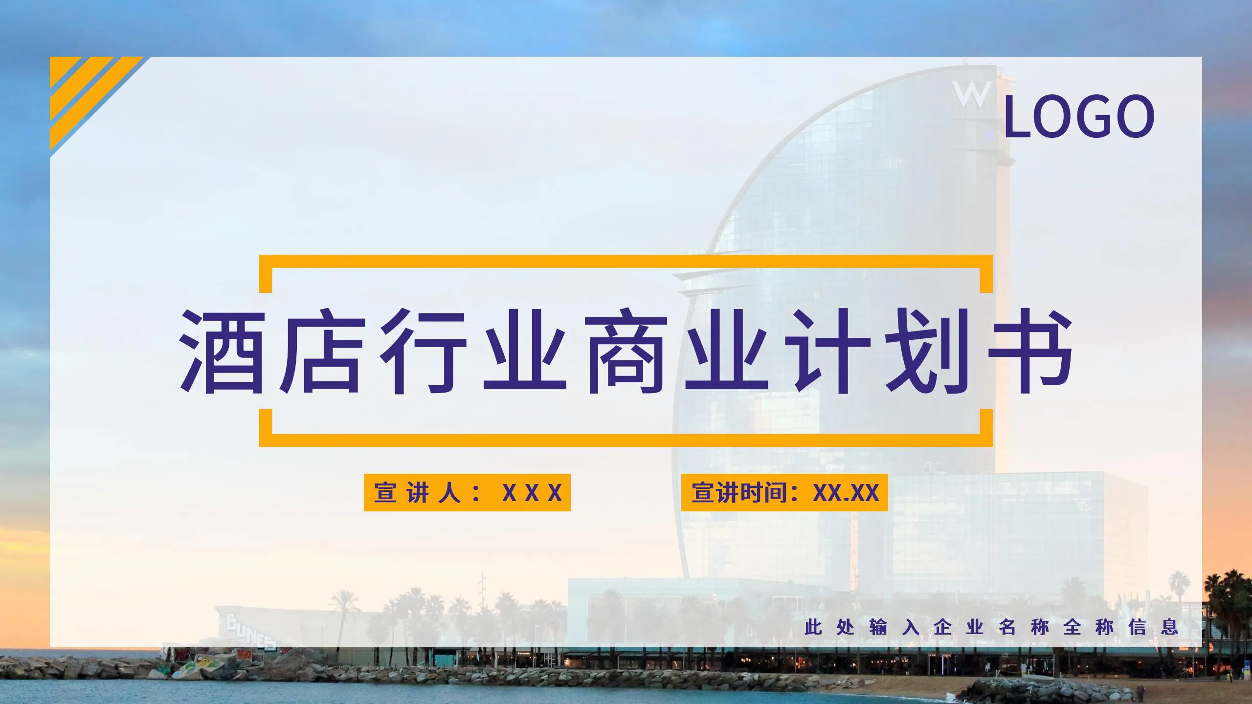 商务风酒店行业商业计划书PPT模板