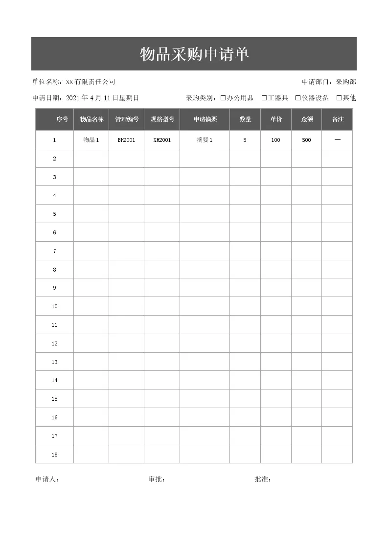 物品采购申请单