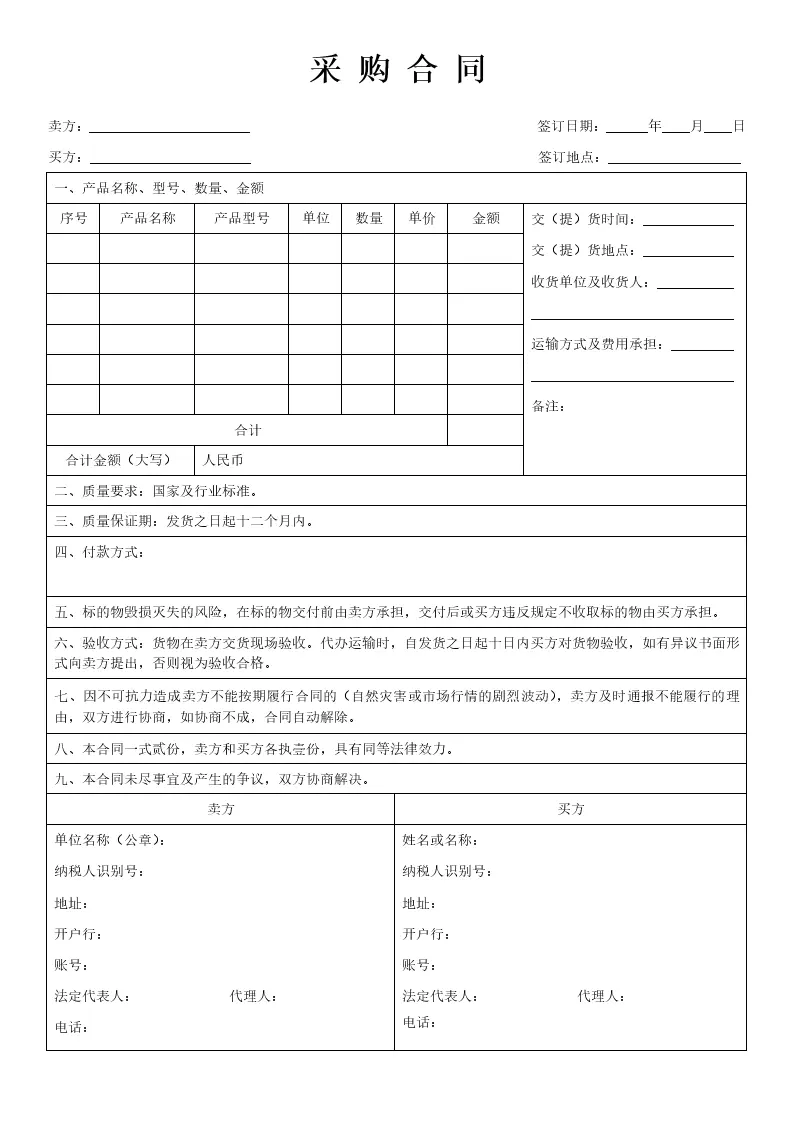 购销采购合同标准版