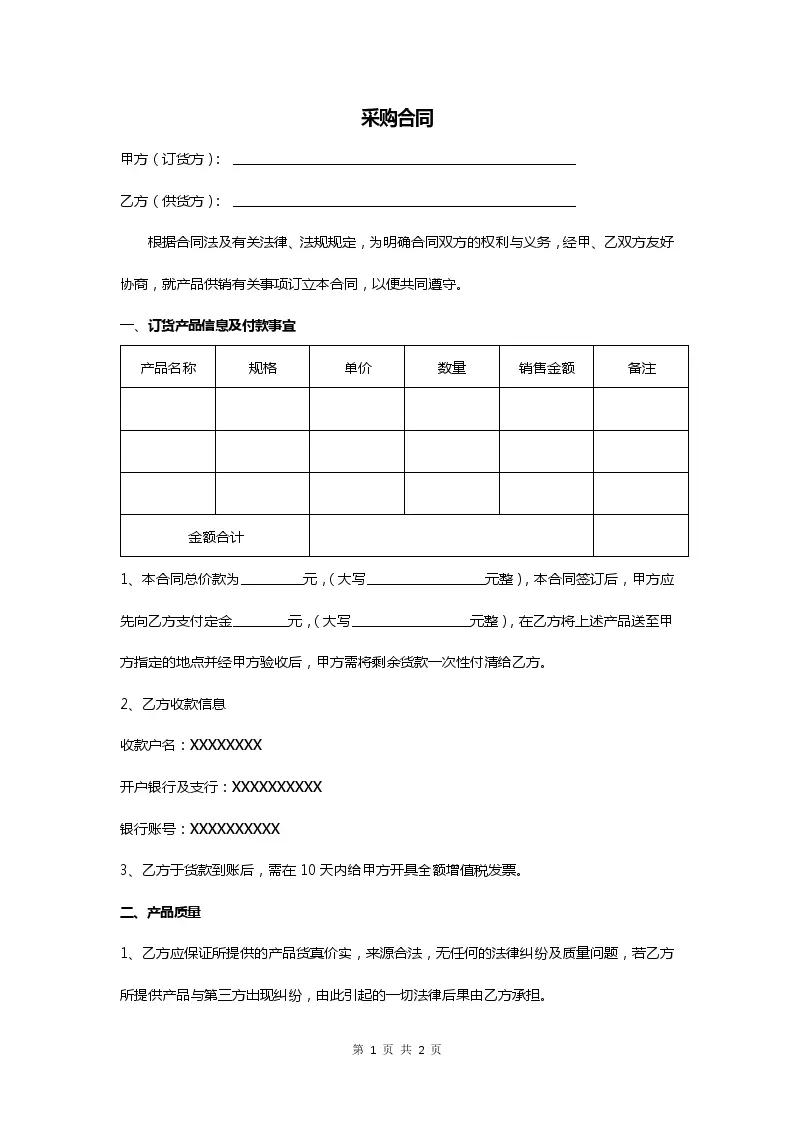 采购合同通用模板