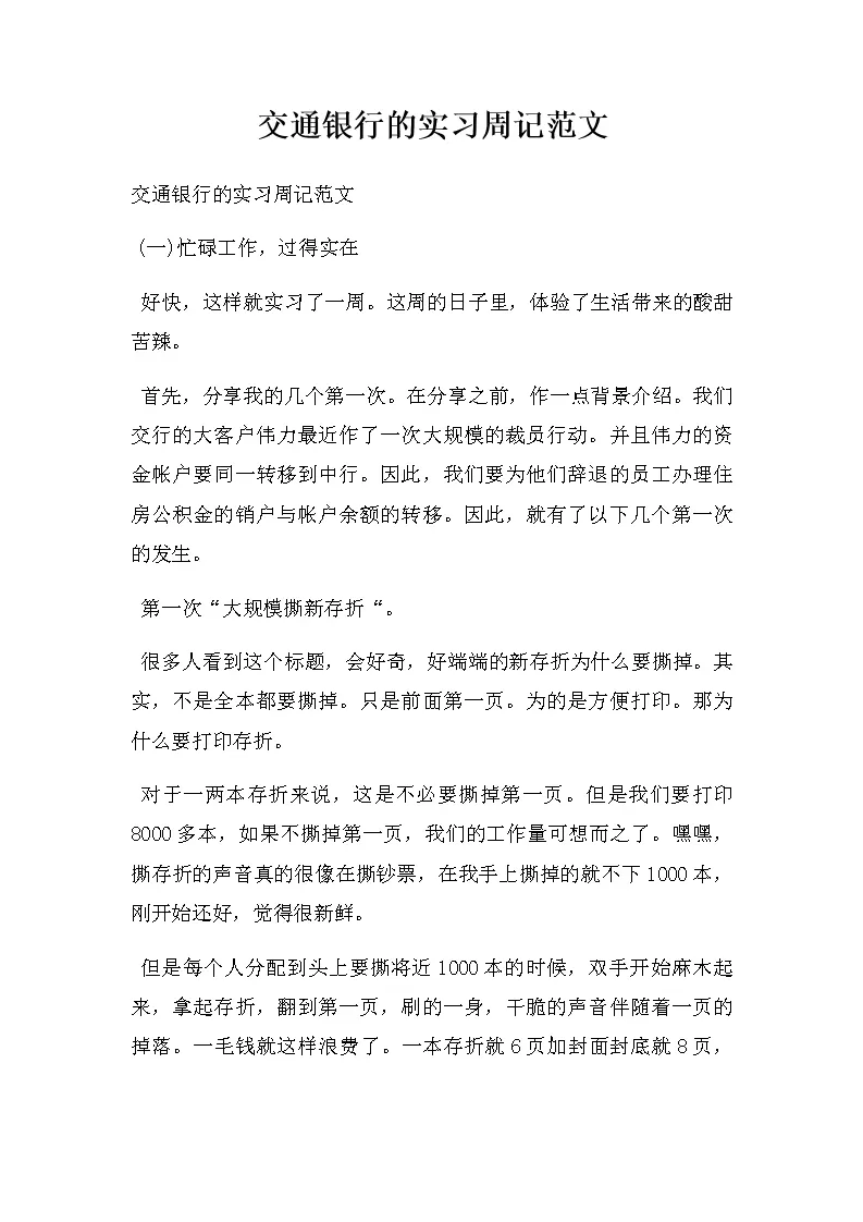 交通银行的实习周记...