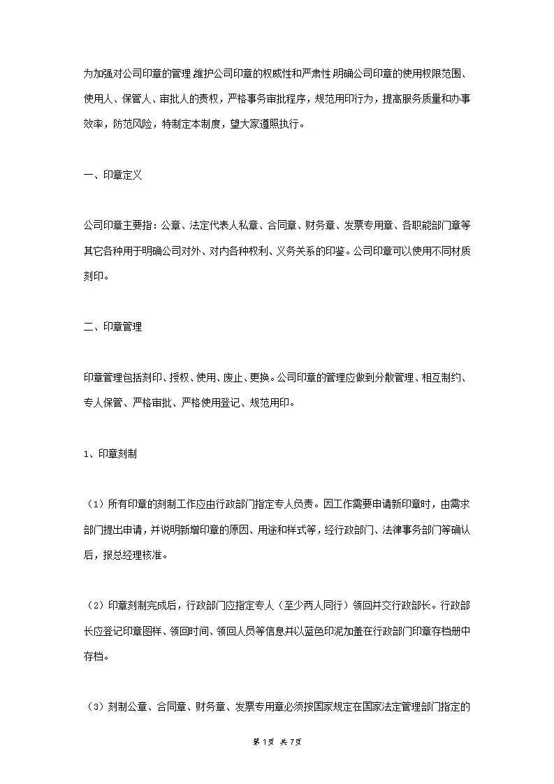 企业印章管理制度范本