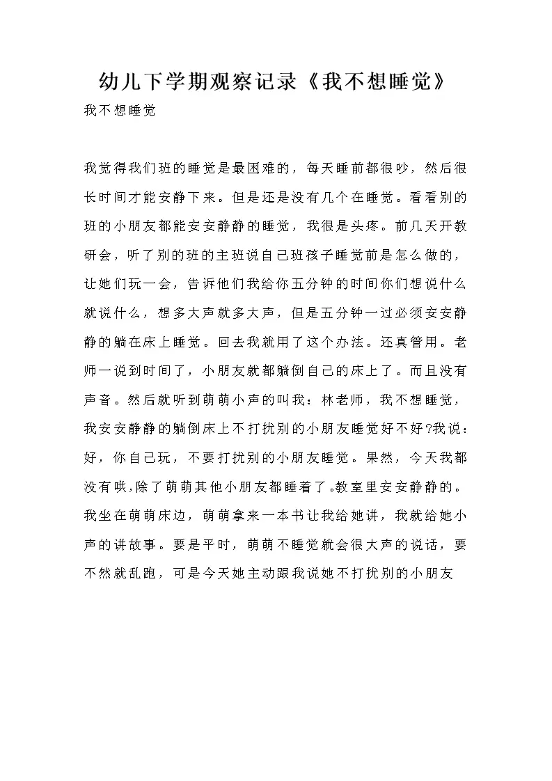 幼儿下学期观察记录《我不想睡觉》