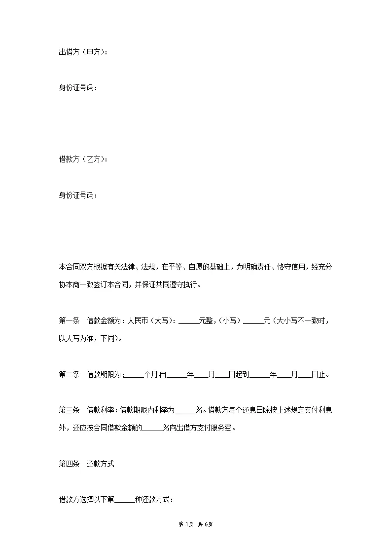 借款合同范本标准版