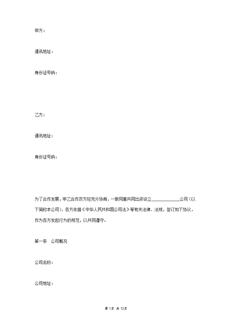 公司成立出资协议书...