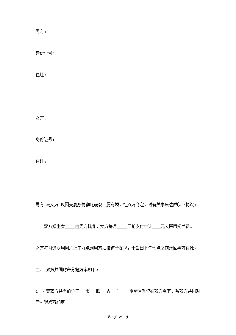 单方面离婚协议书范本
