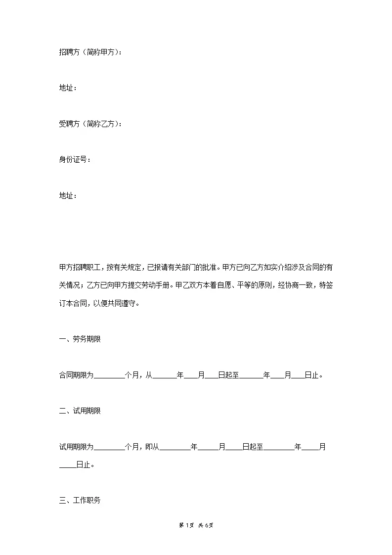 员工劳务合同范本