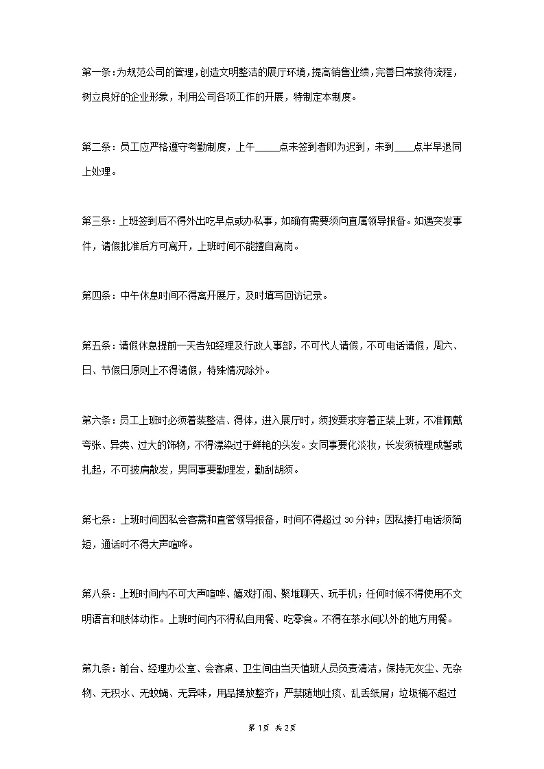 员工守则和规章制度范本