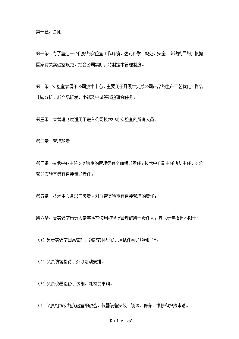实验室管理规章制度范本