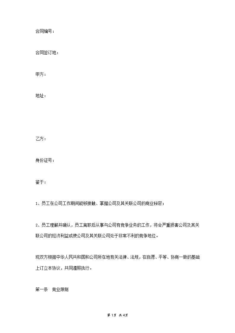 涉外员工—竞业限制协议范本