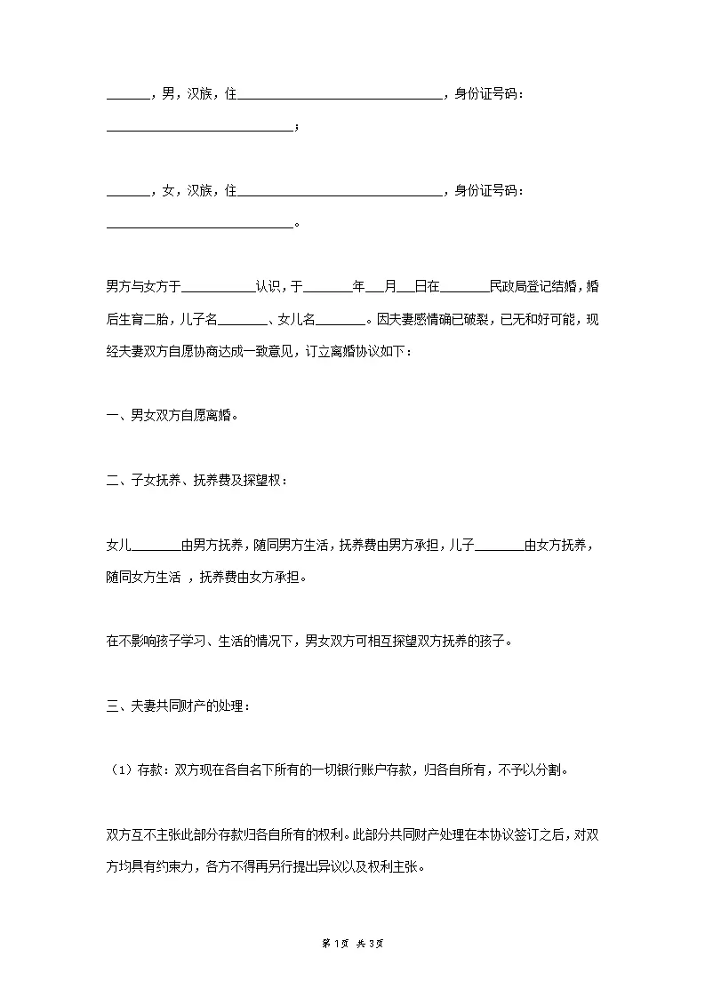 离婚协议书范本