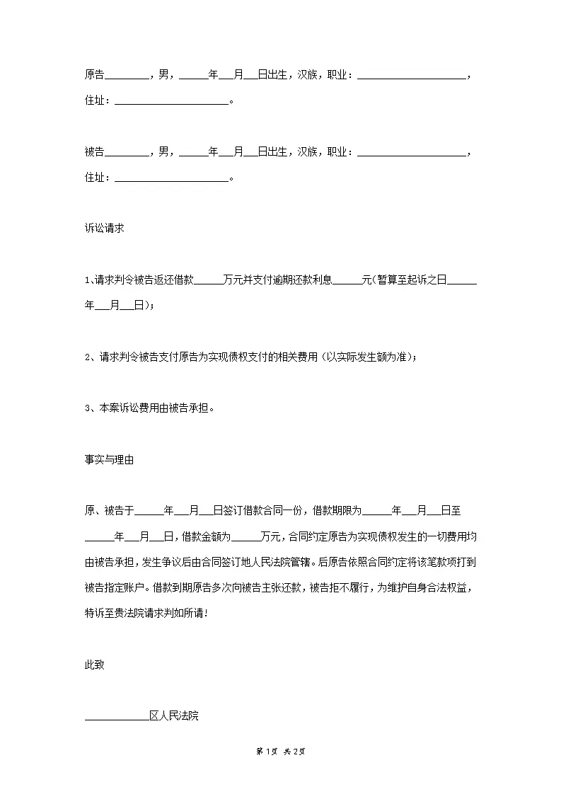 追偿权纠纷起诉状范本