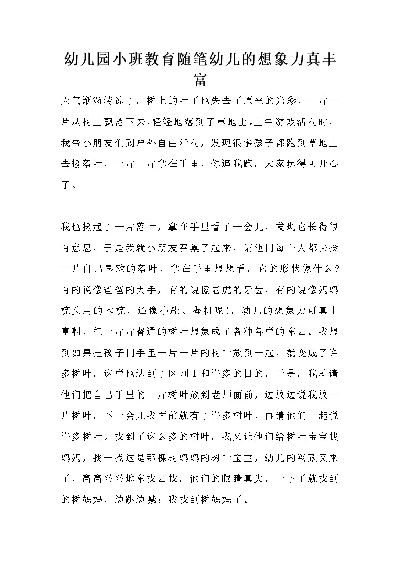 幼儿园小班教育随笔幼儿的想象力真丰富