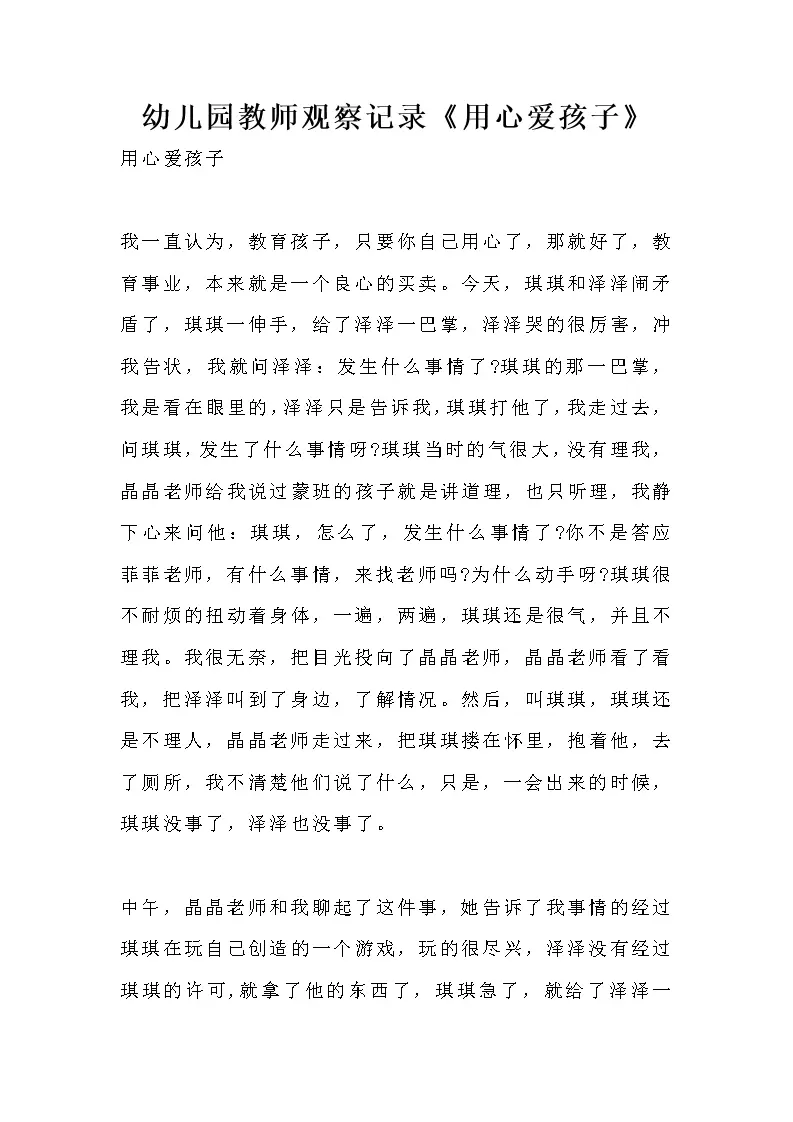幼儿园教师观察记录《用心爱孩子》