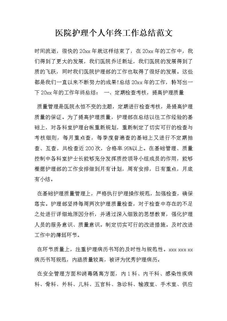 医院护理个人年终工作总结范文