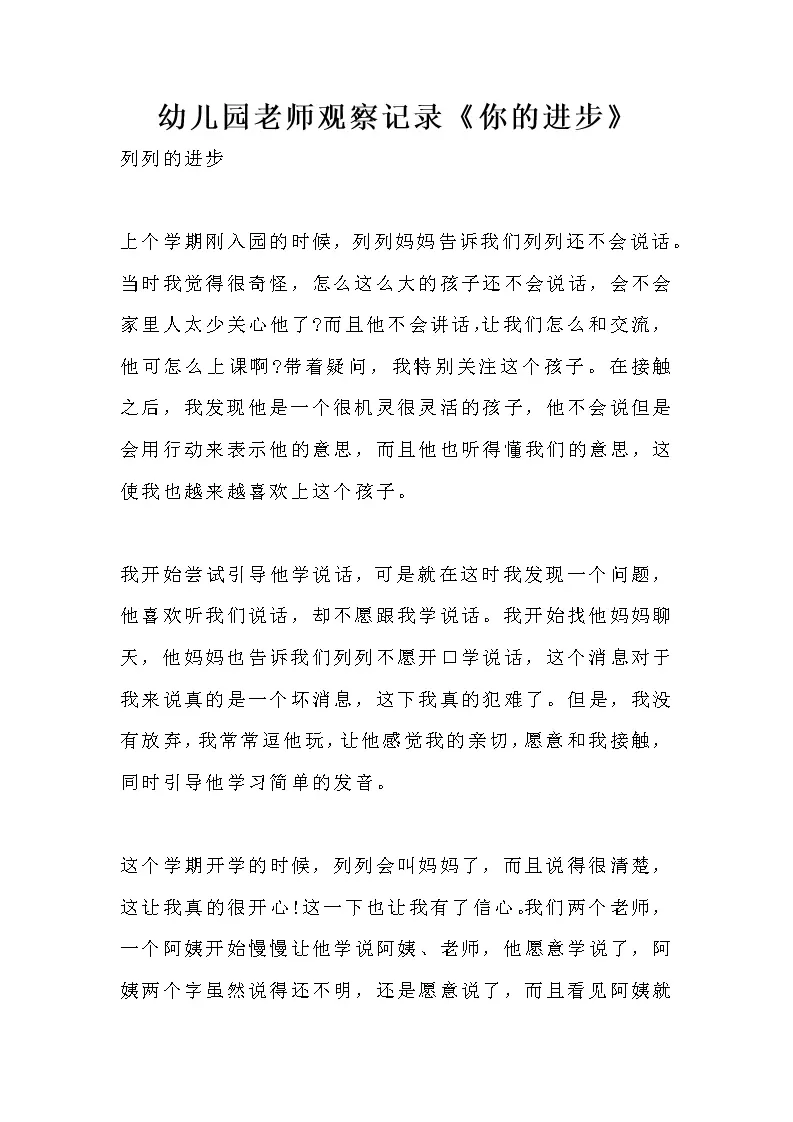 幼儿园老师观察记录《你的进步》