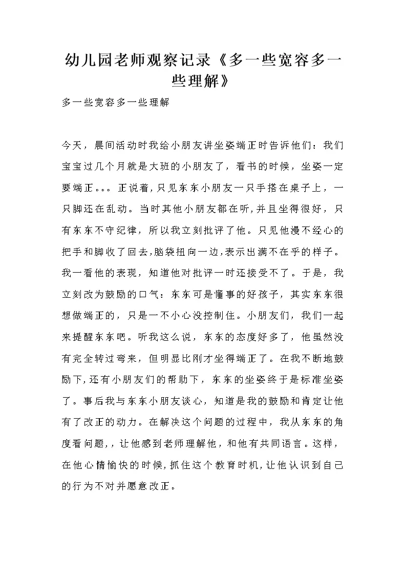 幼儿园老师观察记录《多一些宽容多一些理解》
