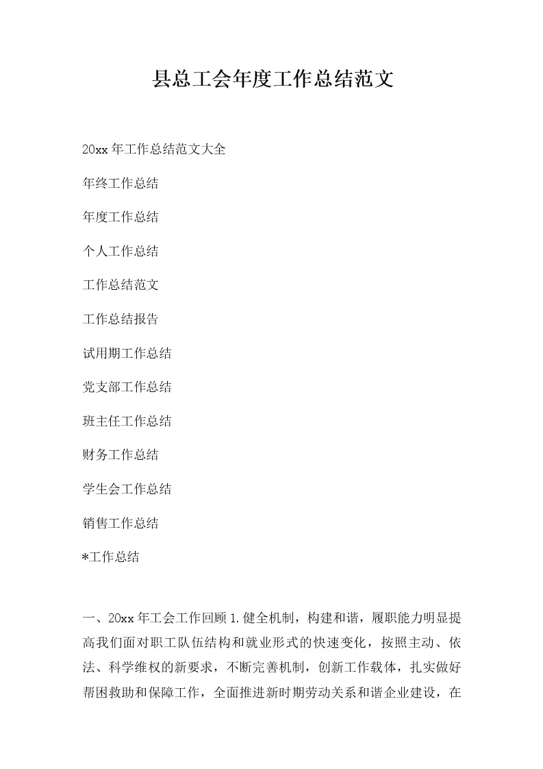 县总工会年度工作总...