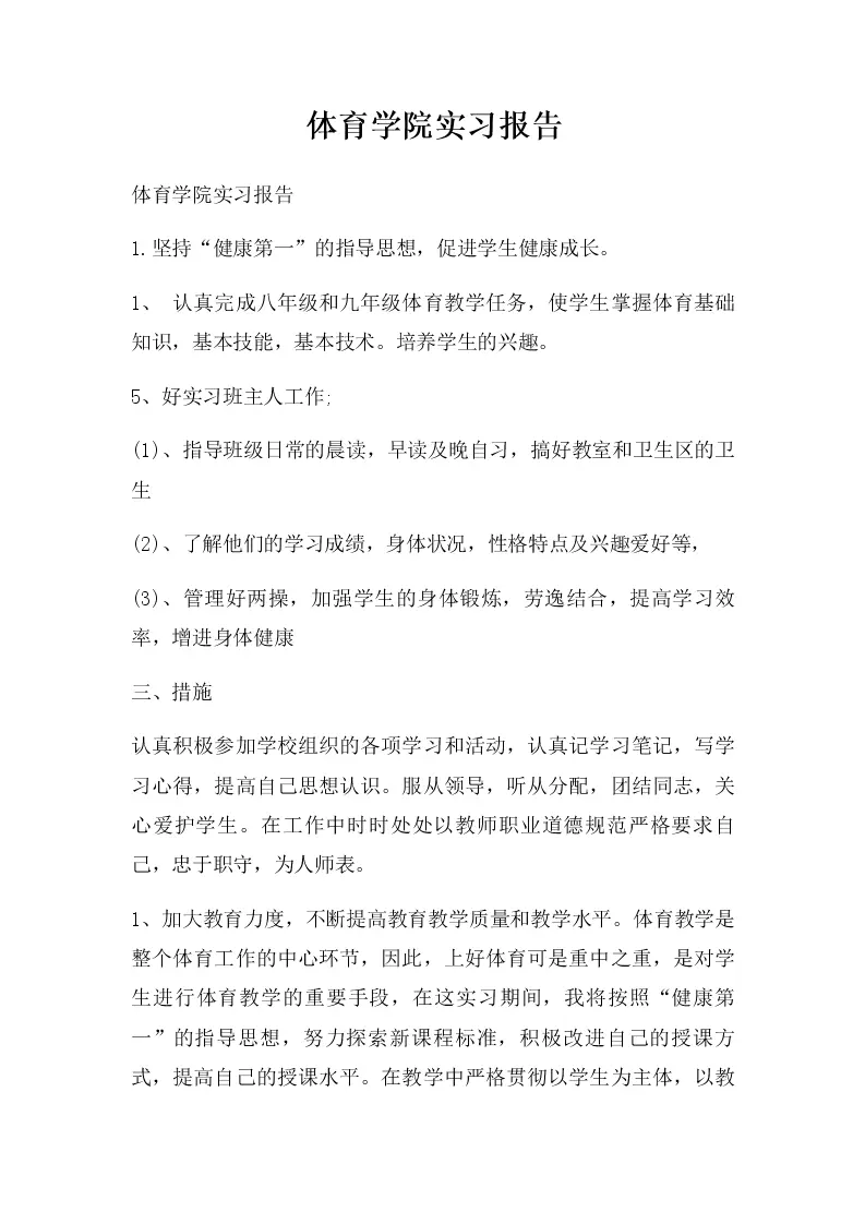 体育学院实习报告