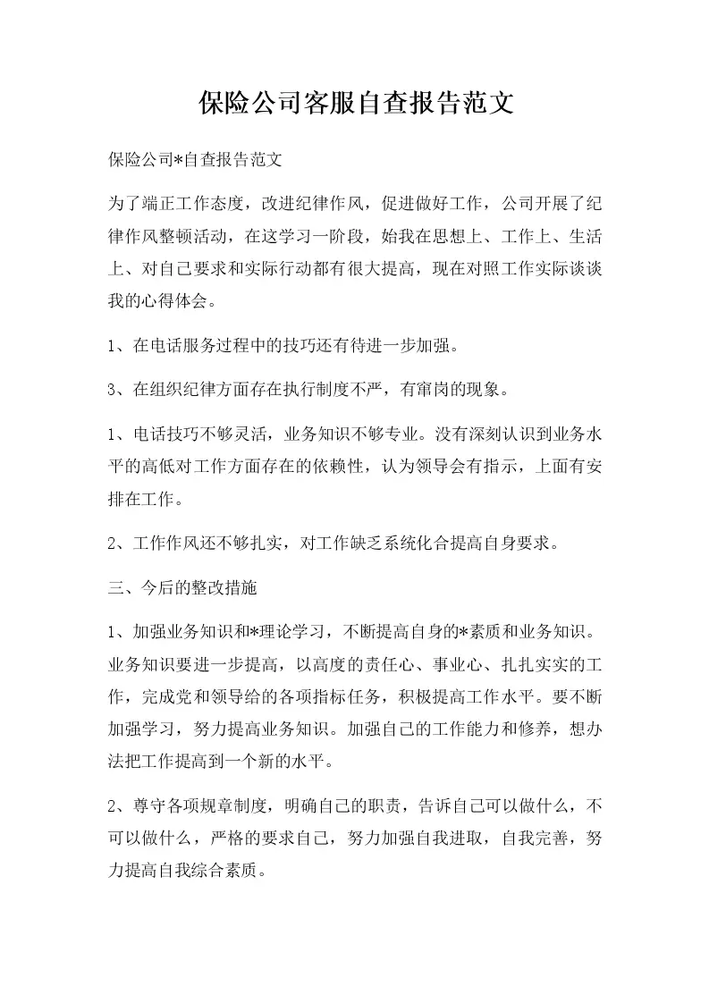 保险公司客服自查报告范文