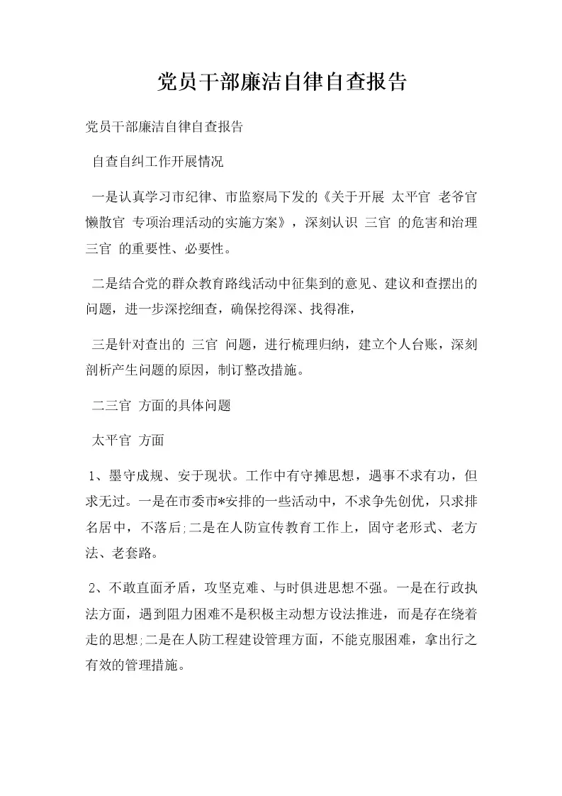 党员干部廉洁自律自查报告