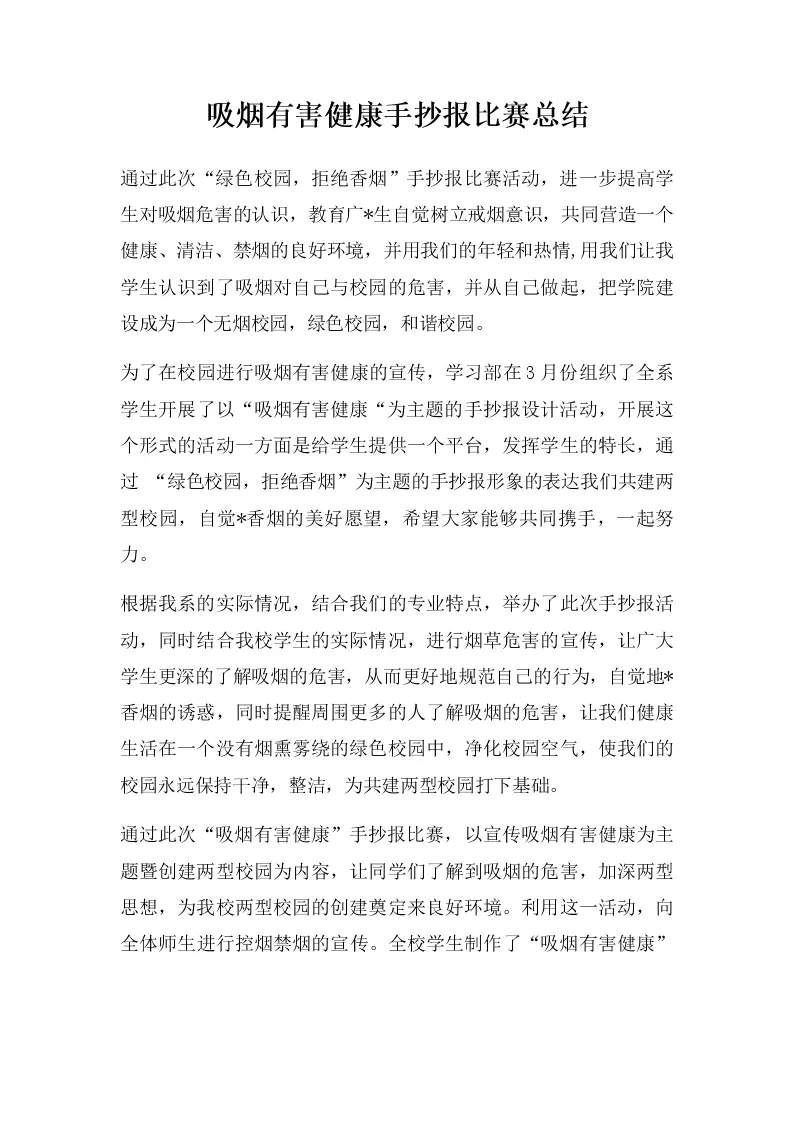 吸烟有害健康手抄报比赛总结