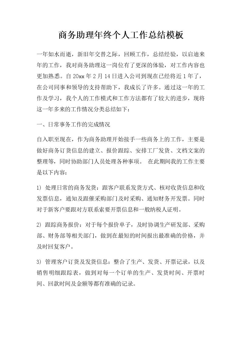 商务助理年终个人工作总结模板(1)