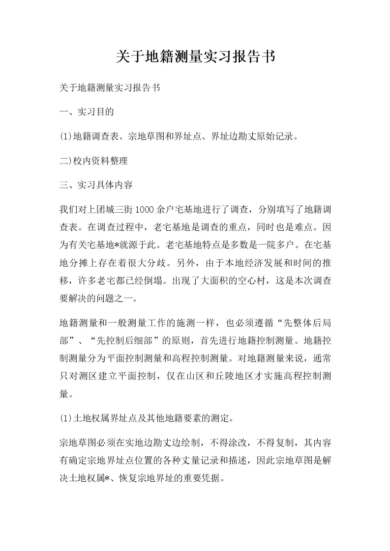 关于地籍测量实习报...