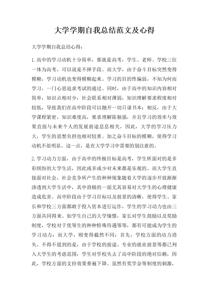 大学学期自我总结范文及心得(1)