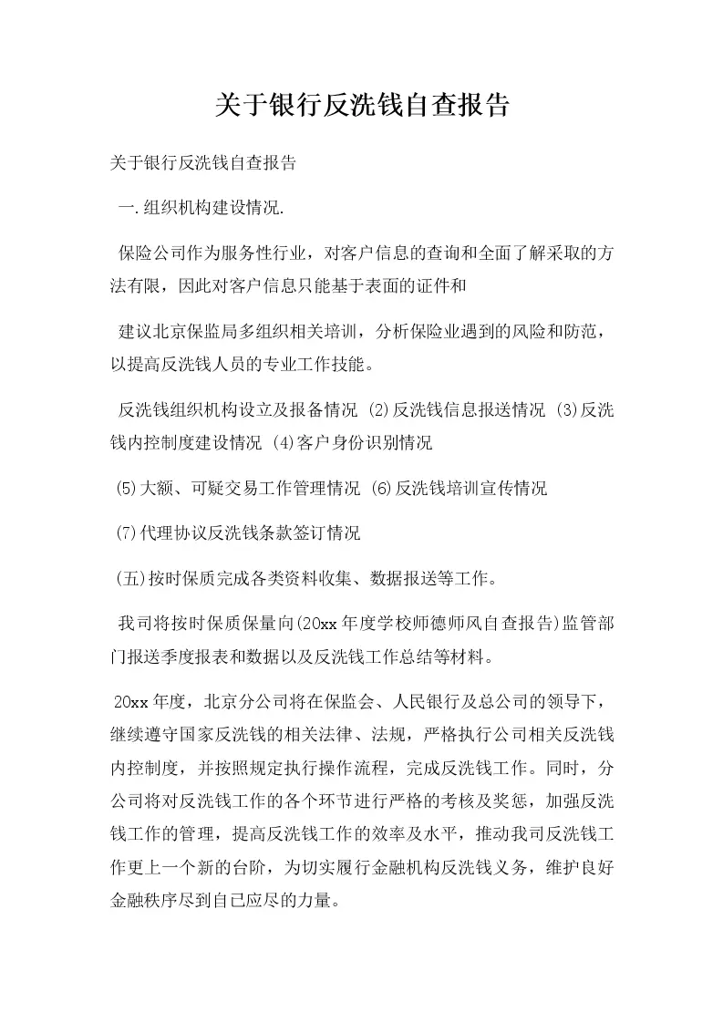 银行反洗钱自查报告