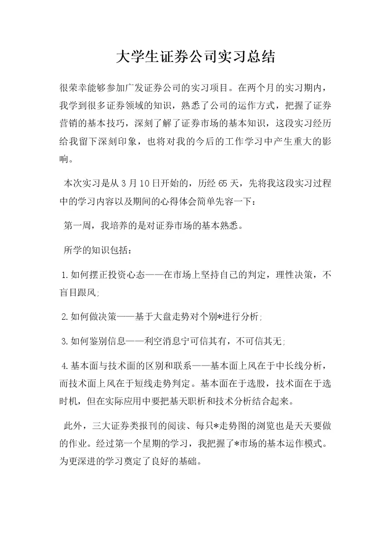 大学生证券公司实习总结