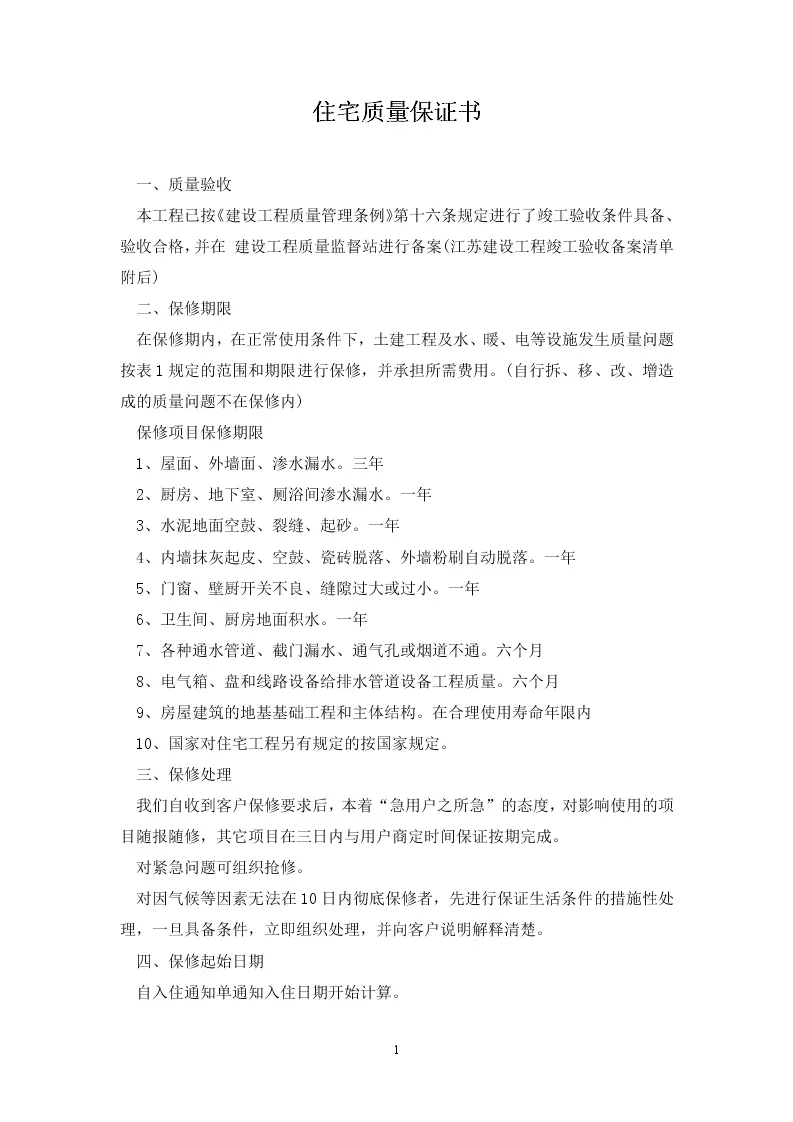 住宅质量保证书范本...