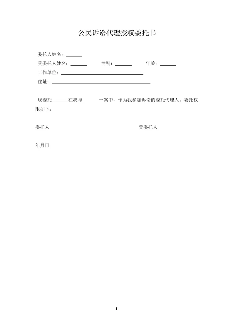 公民诉讼代理授权委托书范本模板