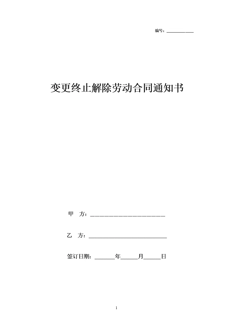 变更终止解除劳动合同通知书范本模板