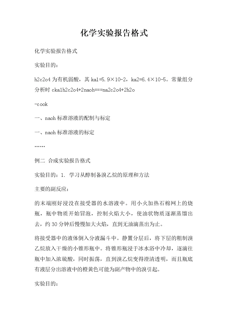 化学实验报告格式