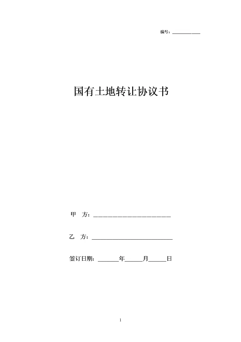 国有土地转让合同协议书范本模板