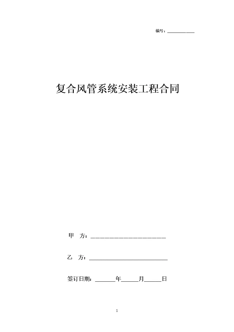 复合风管系统安装工程合同协议书范本模板 实用版