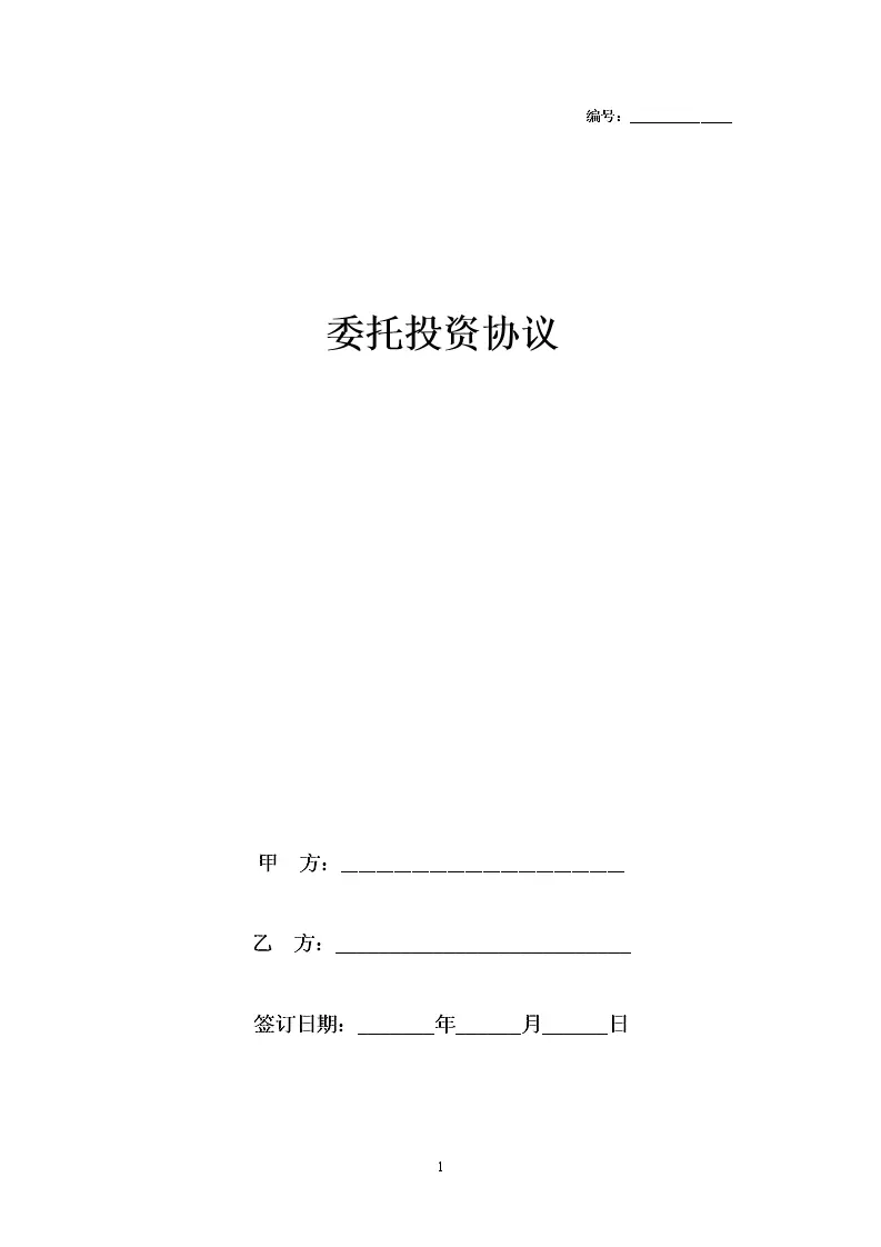 委托投资合同协议书范本模板